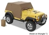 The new All Weather Trail Cover protects the windshield and interior of your Jeep from the harsh effects of sun, wind and rain. Door opening protection flaps are a new feature offered this year. Adjustable straps are designed to provide a snug, tight fit over our other accessories, and ensure affordable protection from the elements. Bestop and its legendary Fit. Function. Style. is evident with the premium fabric which is the same material used in Bestop soft tops and accessories ensuring long lasting durability. The fabric is waterproof and available in factory original exterior colors. Each trail cover comes with its own a stuff sack that keeps the All Weather Trail Cover neatly stored when not in use.